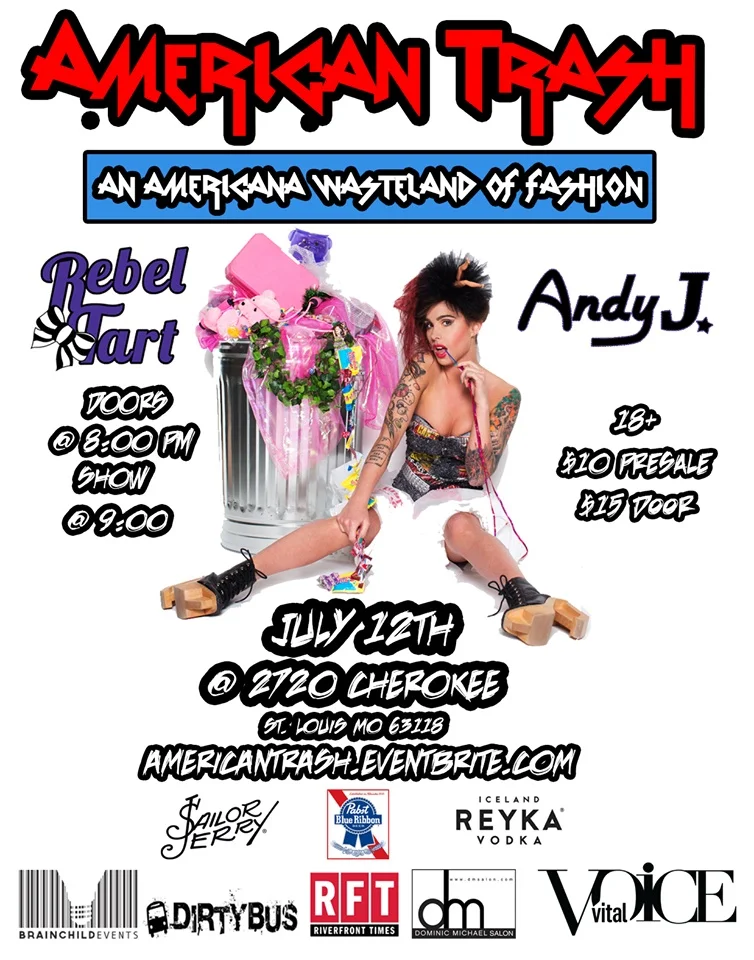 The eclectic space of 2720 on Cherokee Street was absolutely the perfect spot to welcome the Wasteland of Fashion that is American Trash. Designers Cindy Henry of Rebel Tart and AJ Thouvenot of Andy J Designs were tasked with creating looks from non-traditional materials (such as sponsor materials like Red Bull and PBR cans) and recycle threads.