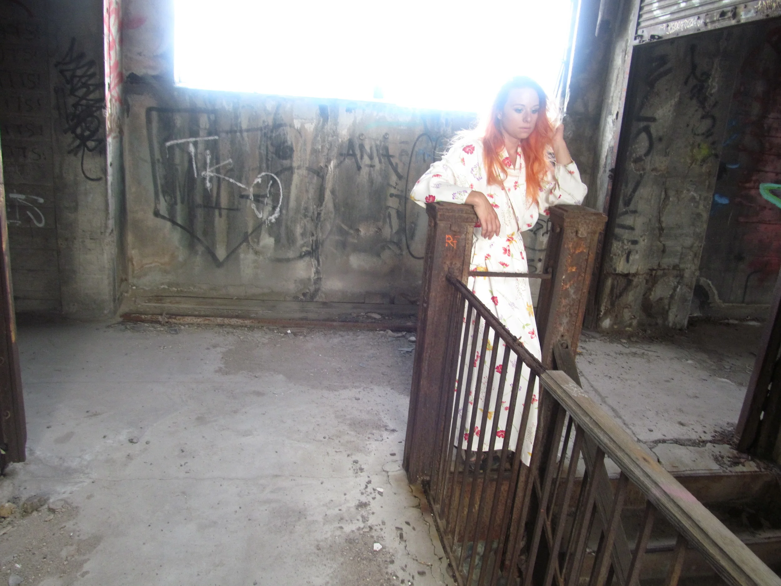 Personally, I feel that true inspiration can only be experienced in person. Being able to explore and draw inspiration from the desolate atmosphere of an abandoned building was priceless. From the outside the building looked pretty sturdy. However, as we climbed the stairs to find specific areas the photographer wanted to shoot, I couldn't fight the feeling that I was going to fall through the floor with each step. As the shoot continued I was able to push that fear into the back of my mind and enjoy the harmony create between the colorful graffiti and the decaying structure.