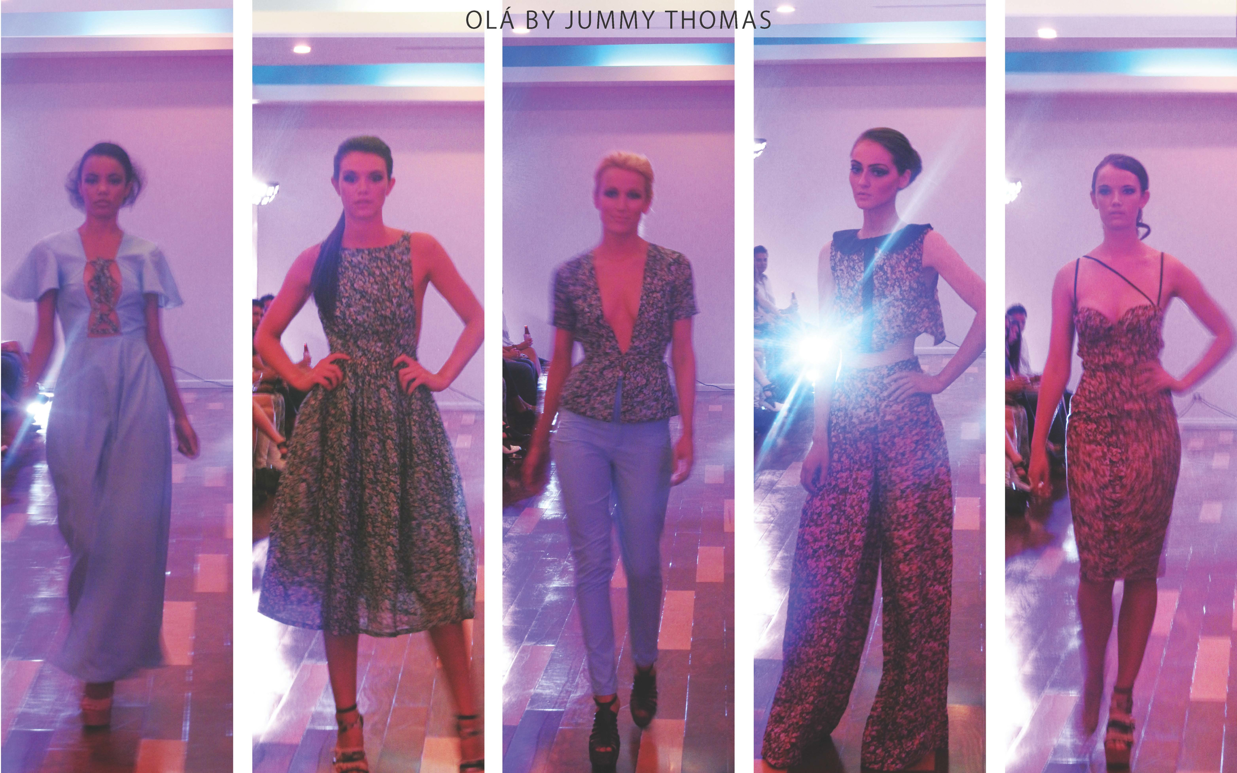 Olá: Jummy Thomas's lineup included spring silhouettes that showed just the right amount of skin. A ditzy flower print and periwinkle blue was carried throughout the collection.