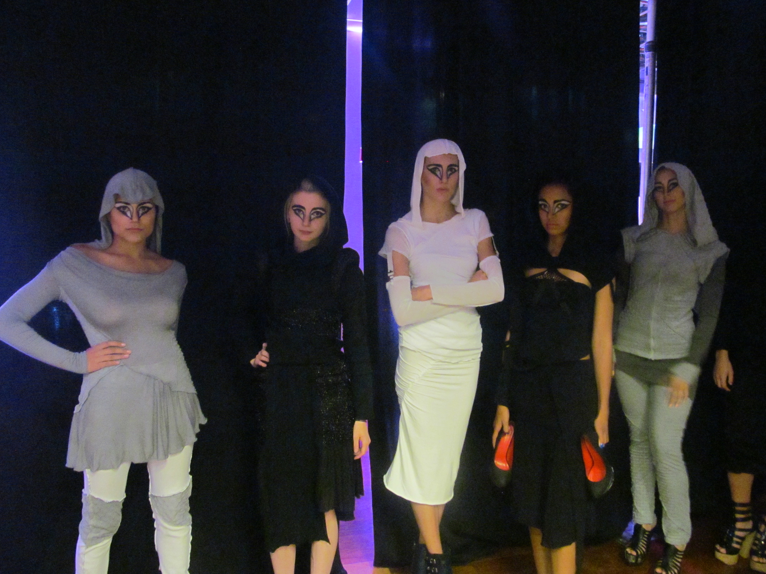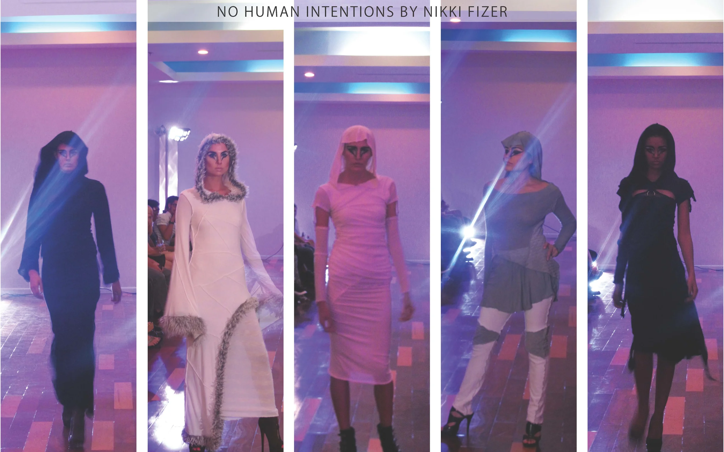 No Human Intentions: Nikki Fizer’s collection was filled with long silhouetted garments with juxtaposing seams. The hooded garments and gray-scale color scheme gave the collection a witchy vibe.