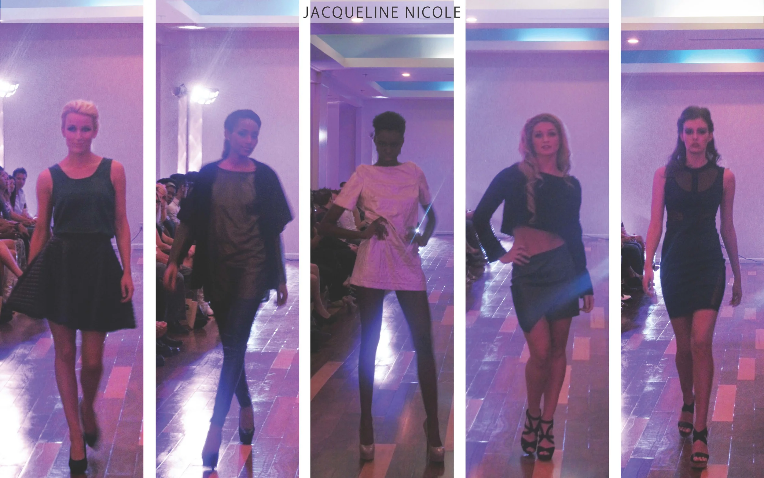 Jacqueline Nicole: This collection included trendy silhouettes such as the circle skirt and the cutout body- con dress. Garments also included mixed textures and an earthy & metallic color palette.