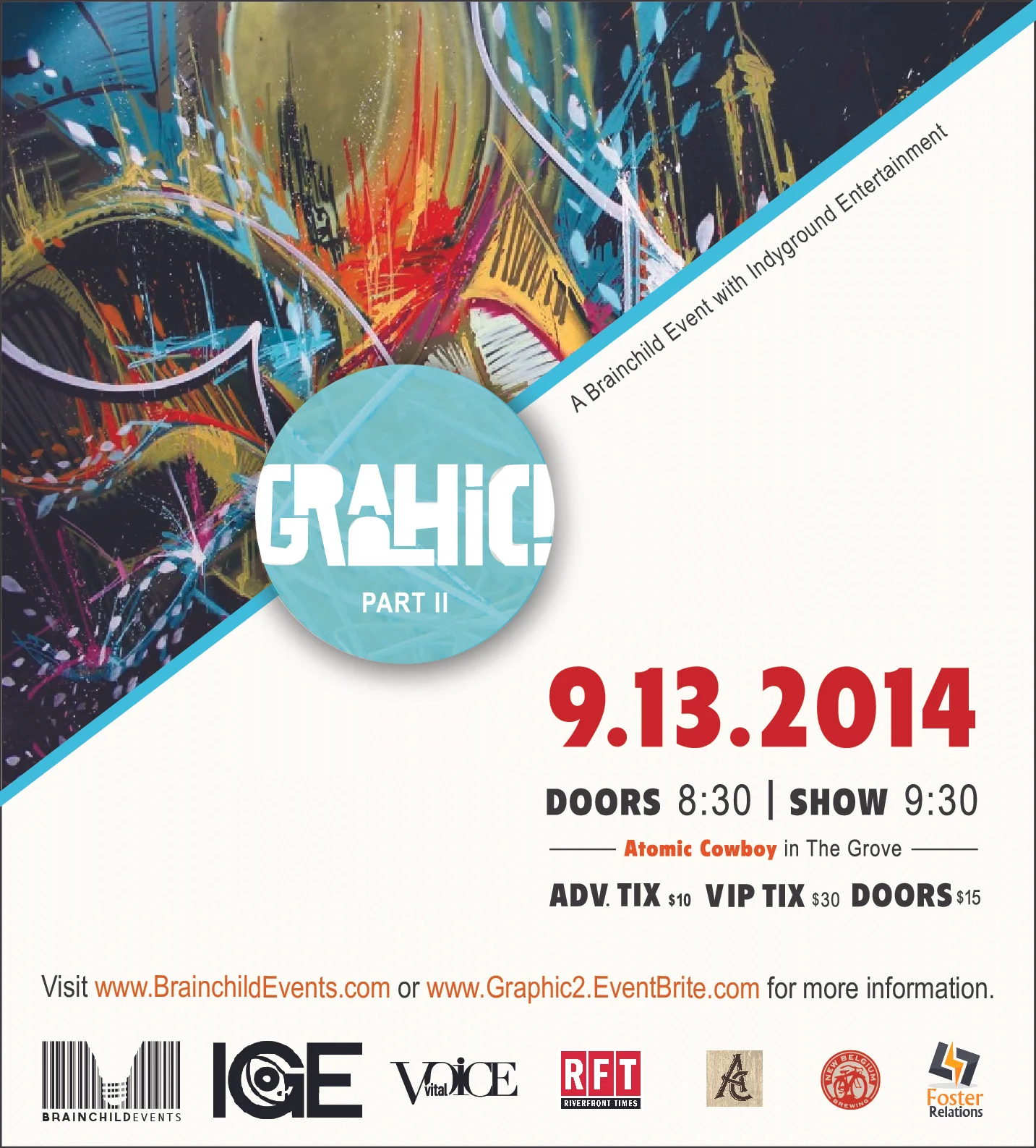 Graphic! was created by Brainchild Events and co-produced by IndyGround Entertainment. Sponsored by The Vital Voice, New Belgium, Foster Relations and The Riverfront Times.